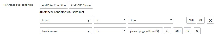 -requested for's manager, requested for manager's manager, User access group.