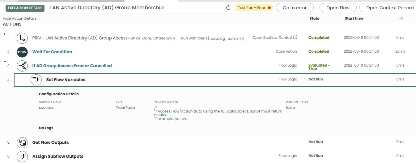 In 4th step "Set Flow Variable", You have to write return "error" (as throw "error" will not work).