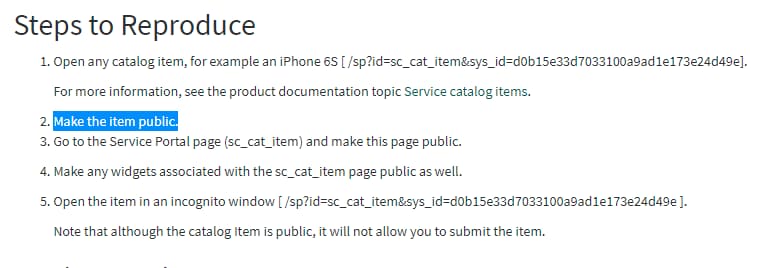 I am trying to make my catalog item accessible from public (without login / unauthorized).