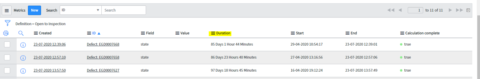This script monitors the status change of the defect from when it is opened until it goes to Inspection. The code works fine but I would like to know how I can take the duration value that the metric does and put it in another duration field inside the defect table.