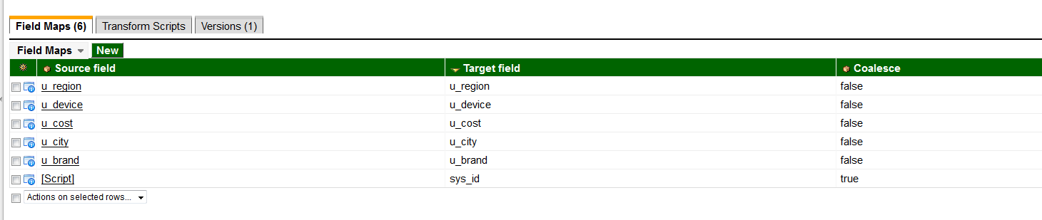 the error in the transform is - Unable to resolve target record, coalesce values not present: u_sys_id