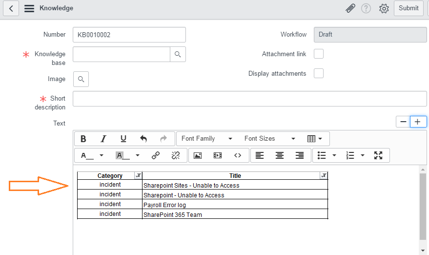 and pasted it directly into the "Text" field of a Knowledge article.