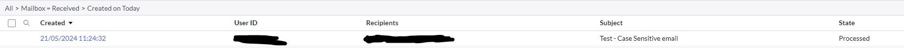 When emails are received (inbound received emails screenshot) the incident record is not being produced