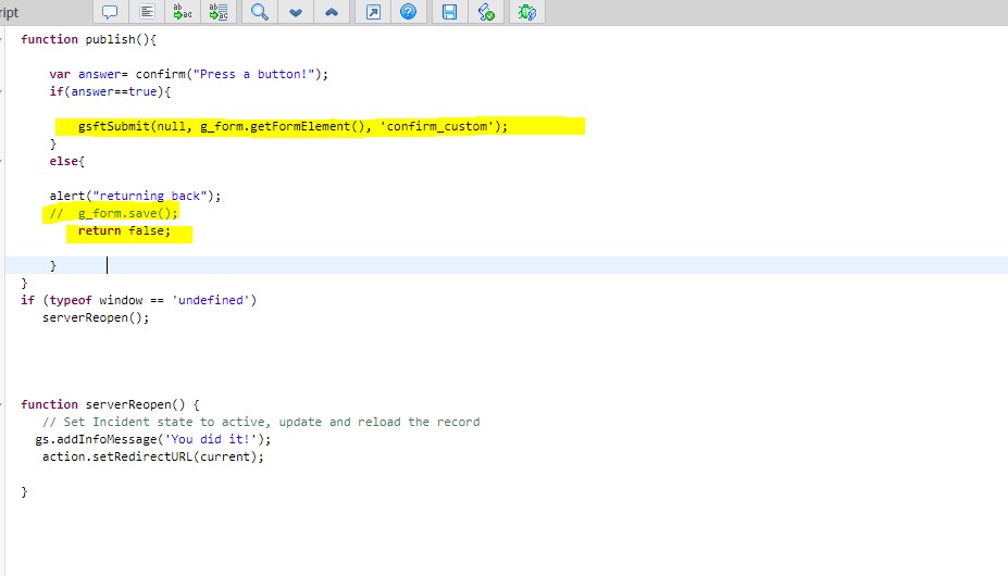 In that case the publishitem function will only call when your answer = true. but you want that it should not run when execution comes in the else part. so that code should be work it should not call the publisheitem function when it comes in the else part.