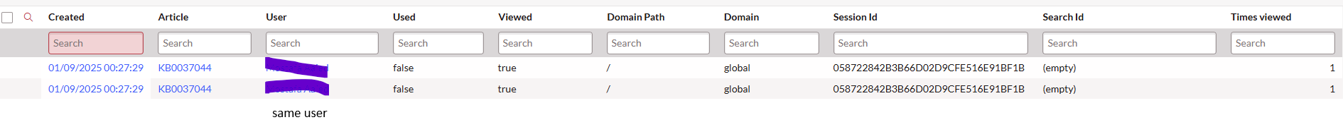 if the users open the KB article twice the event gets fired twice (no.of view = number of events)