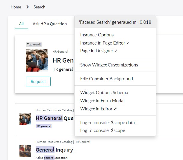 Now, this is just my thought process here. The screen shots showing the additional faceted boxes for filters is from my personal dev instance with AI disabled. And that was how our company page looked as well (OOTB) with that widget. Now that we are upgrading to the employee center pro and I have enabled AI Search and pointed my searching to it, those additional filters went away. I did not personally do it (since we cannot do it anyway as the Faceted Search widget is Read-Only policy).