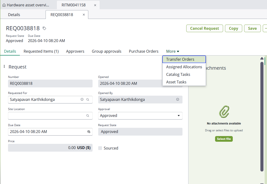 Are your requests visible under Asset Operations -> Procurement -> Requests?