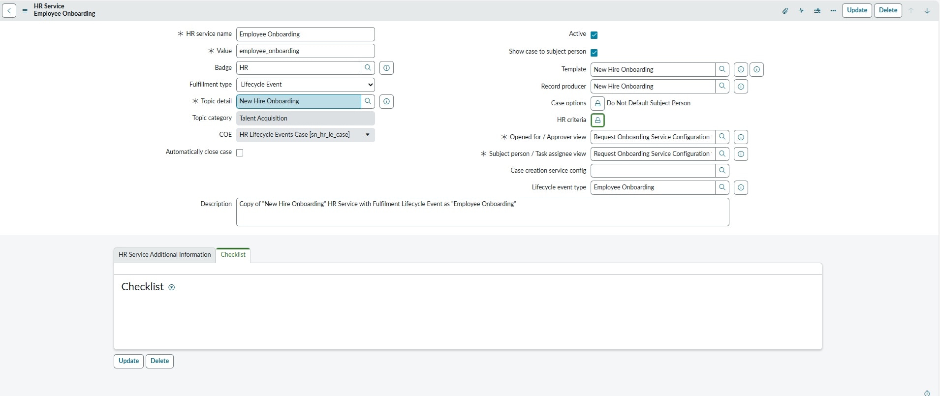 I made a copy of "New Hire Onboarding" HR Service and called it Employee Onboarding.