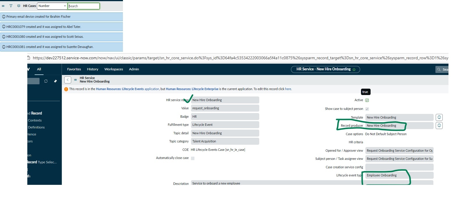 When I use the Original Record producer with my new lifecycle event, Subject Person in HR Case is empty.