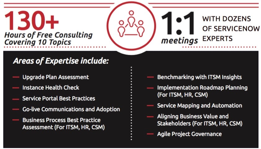 So walk up to the Genius Lounge located at the ServiceNow Pavilion, or get hands-on in your ServiceNow instance alongside our team of experts. Office Hours Consultations are by appointment only, so schedule yours today!