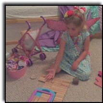 As I contemplate my dejected daughter (replete with fairy wings, blinky necklaces, wand and tiara), and the rather large heap of Magnetiles, Bendarooz, colored string, Legos, HotWheels (muscle cars and fairy wings, that's my girl!), I reach for the nearest brightly colored doodad, and she shrieks -