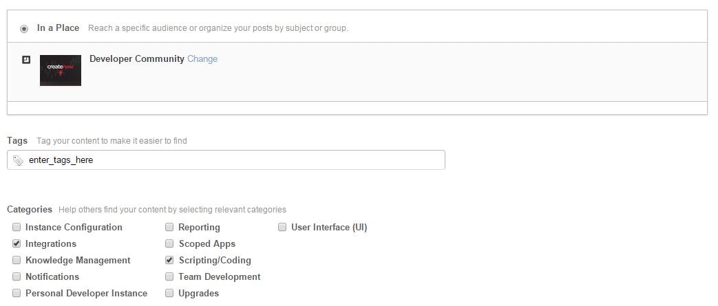 Now that the new categories are in place we need your help for them to be successful. When creating new content please be sure and add "tags" and choose all "categories" that are relevant to your community contribution.