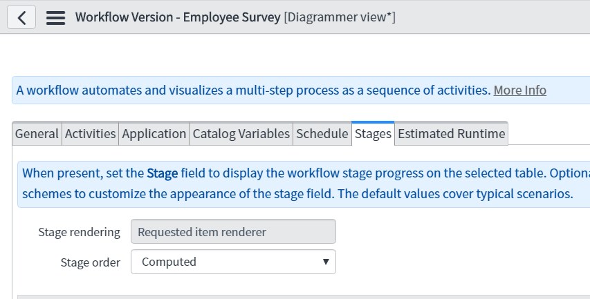 When a catalog item is requested and when it creates RITM, the RITM Stage field shows the stage in which workflow is currently at.