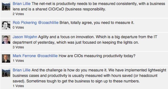 As the role of CIO expands to one that transforms office culture and workflow, what challenges can be expected? Participants agreed that measuring changes in enterprise productivity would be the biggest obstacle.