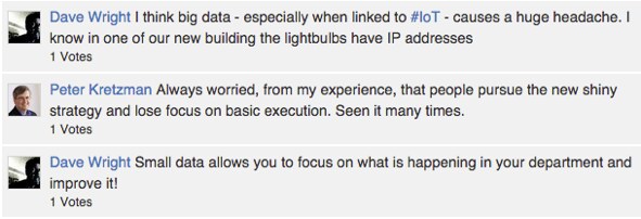 Next, the crowd discussed whether the focus on Big Data overshadowed the need for Small Data that gives insight to operations.
