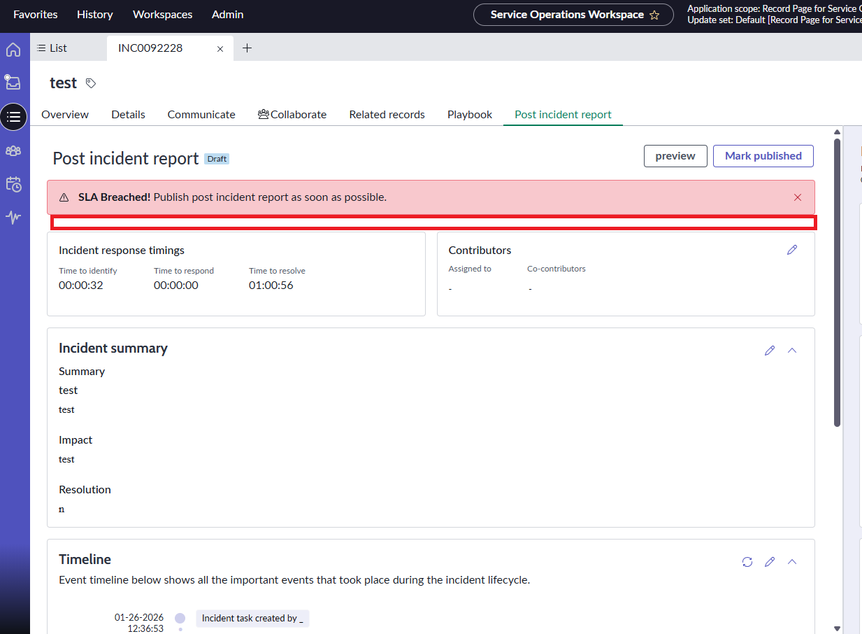The Post Incident Report is a separate tab within the INC record.