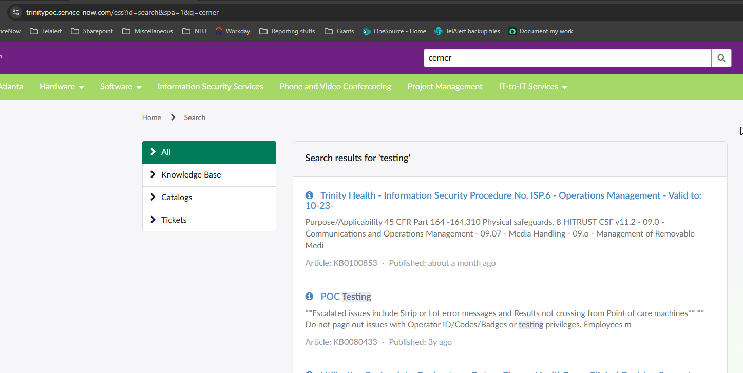 Currently when using the Search function, you will type in a word and it will search, if you attempt to type in a new word and press enter it will not update the search with the new word.I found out that the search function works fine for this -https://trinitydev.service-now.com/ess?id=search&spa=1&q=catalogs in dev instance and prod too.But the search does not update for ess2-https://trinitydev.service-now.com/ess2?id=search&spa=1&q=catalogs.So we can compare these two?