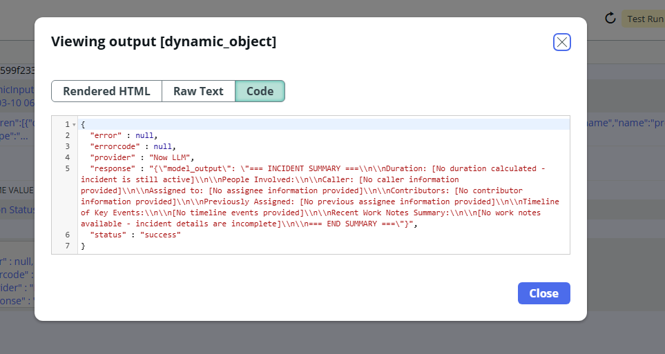 The Problem: When I pass these subflow outputs to an "Execute Skill" action using Dynamic Inputs, the entire complex JSON object (including ServiceNow metadata like display_value, defination, label, type etc) is being sent to Now Assist AI instead of just the clean string values.