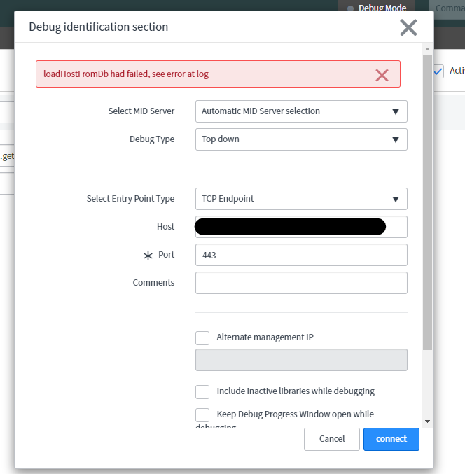 loadHostFromDb had failed, see error at log