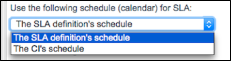 - In Helsinki and later releases, check the setting of the "Schedule Source" field on the SLA Definition record. This controls which Schedule gets attached to the Task SLA record.