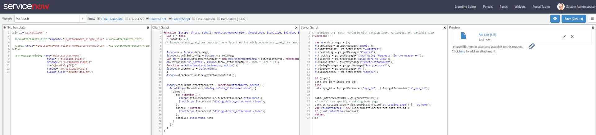 I have created an attachment widget to use it as a variable in a catalog item. We are able to select the file but the file upload is not happening.Can anyone help me to identoiy the issue?