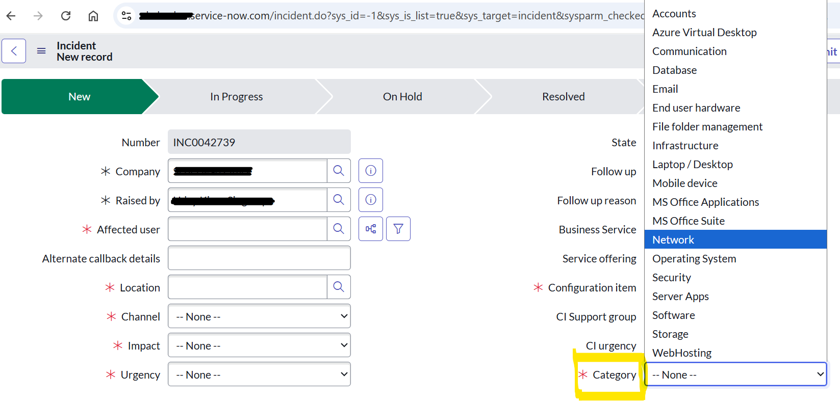 In ServiceNow Platform there are so many choices available in category field but in Service Operations workspace only 2 choices are available in category field.