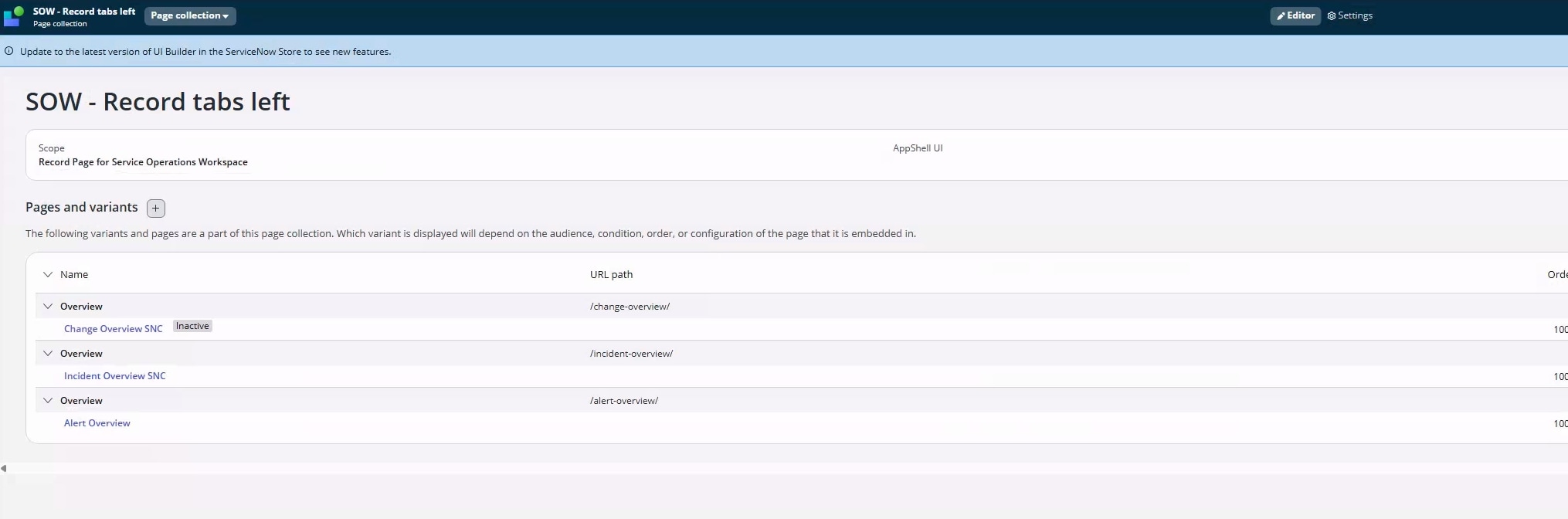 When I check the Page Collections containing the Incident Overview SNC (SOW - Record tabs left), I also don’t see any duplicate entries.