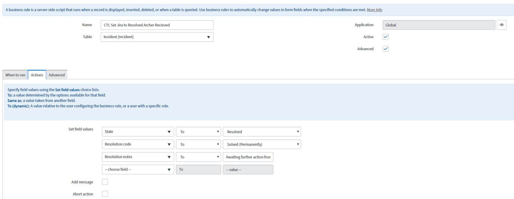 I want to create an automation process to close tickets in ServiceNow once the tickets are created in Jira. Basically, once there is a request in SN and a ticket is created, automatically a new request will be created in JIRA. So once the ticket is created in JIRA we no longer have to worry about the solution, JIRA will take care of that. So I need a process once after the ticket is created in JIRA the incident should close in ServiceNow