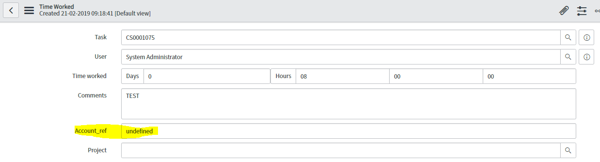 In the Time Worker table, I've created a Reference custom field "Account_ref" to the customer_account table.