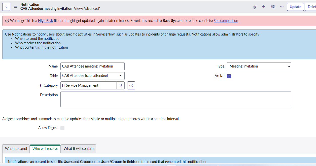 While I’ve added all the necessary users and groups to the email notification , I’ve observed that only the attendees listed in the cab_meeting attendess are receiving the Outlook calendar invites. The notifications are triggered successfully in the instance, but the calendar invites are not reaching the additional recipients in Outlook.