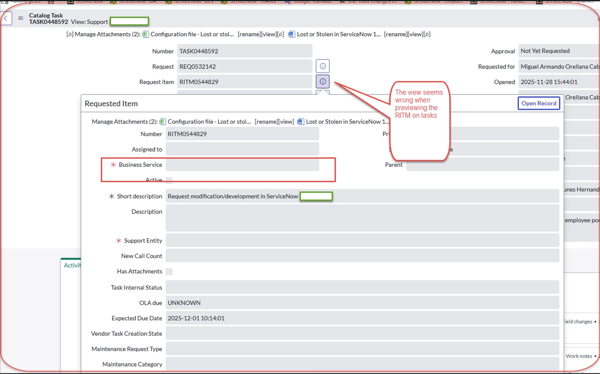Hi everyone, I’m facing an issue where the Requested Item (RITM) form displays differently depending on how it is opened.