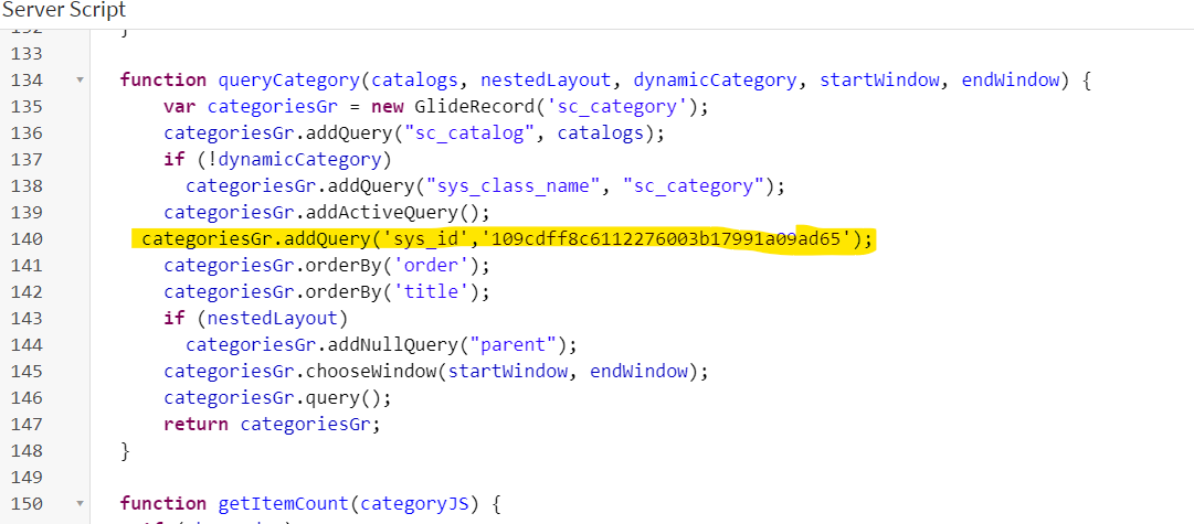 I'm trying to limit the sc_catagori widget, forcing it to only show a single Service Catalog category. I've already cloned the OOTB one to a custom one.