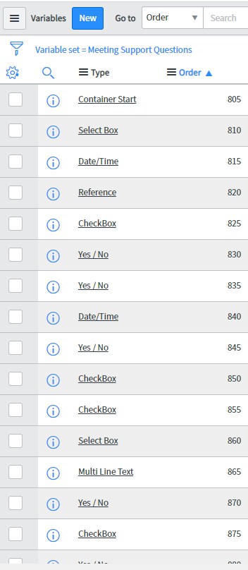 I tried setting the order for variables in variable-set lower than the other 'non variable set' variables. But still the the variables under variable-set "meeting support questions" appearing at top. Can you please help me fix this ?