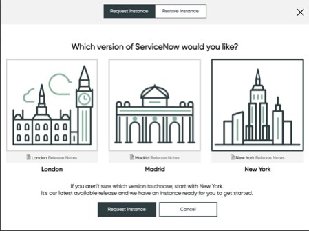 (参考) ServiceNow のバージョンは都市名が利用され、その頭文字がアルファベット順になっています。つまり、New York の前のバージョンは M から始まる Madrid で、New York の次のバージョンは O から始まる Orlando となります。Orlando の次は P から始まる Paris となる予定です。