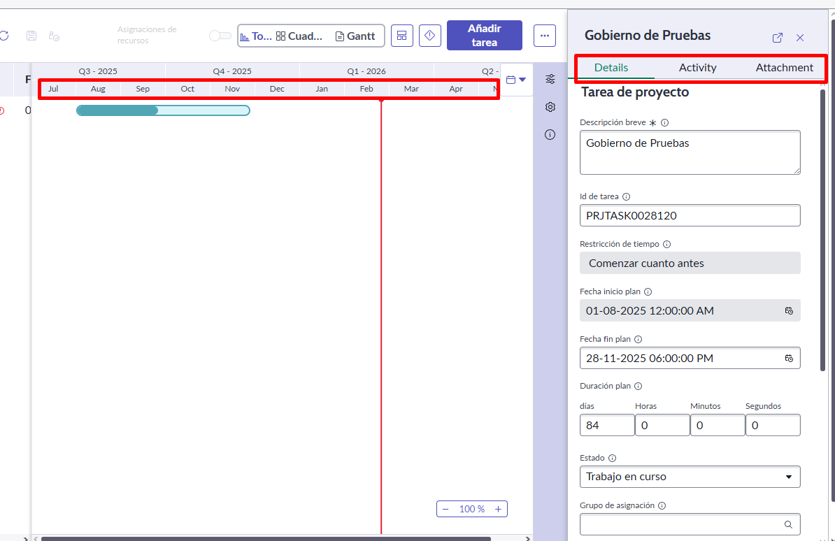 I need to translate the Project workspaces sections (Gantt and Task Details). My instance already has the Spanish plugin installed, as it's the default language.
