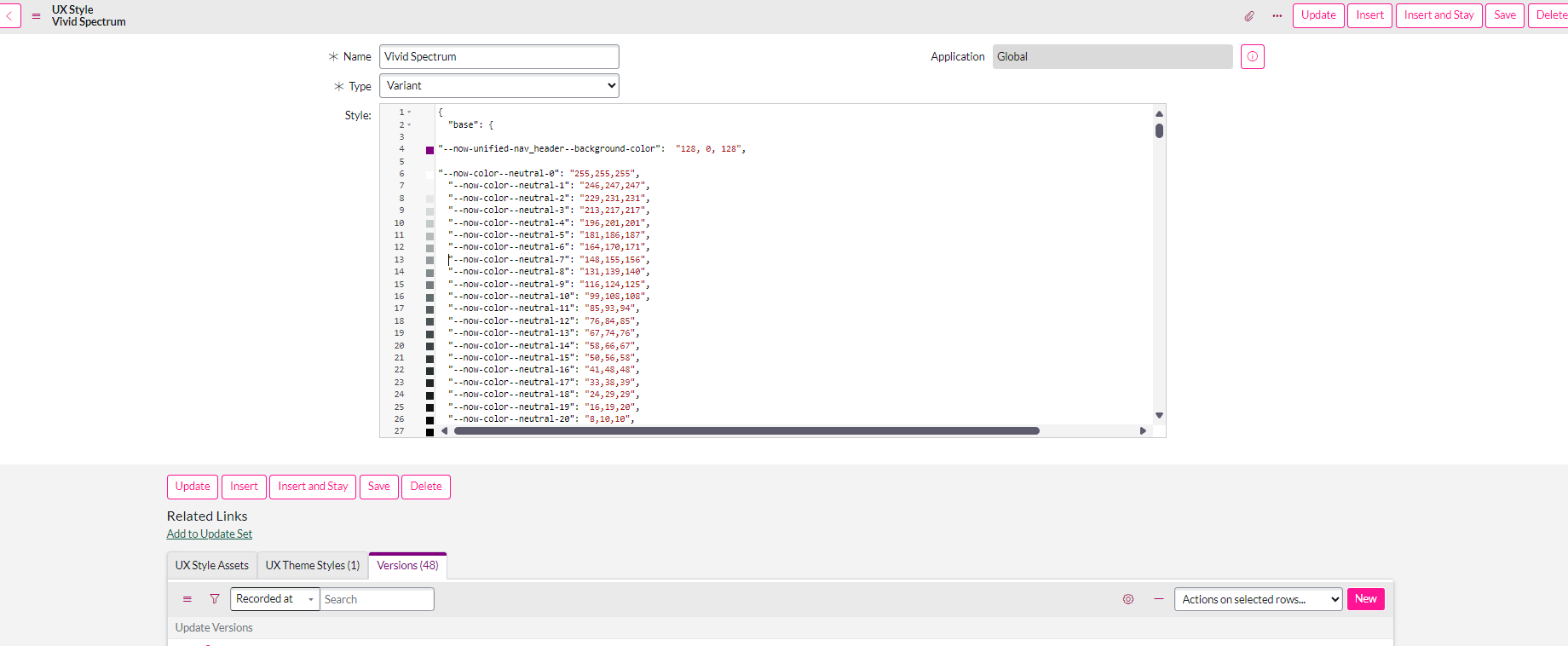 My issue is that with the script, all the buttons, tables hovers do change their colors as soon as I update/change the script. However, the top nav bar background color refuses to change. It has stuck in a color when I was copying a script over from another variant. For the background property, currently I'm using this code both under base and properties: