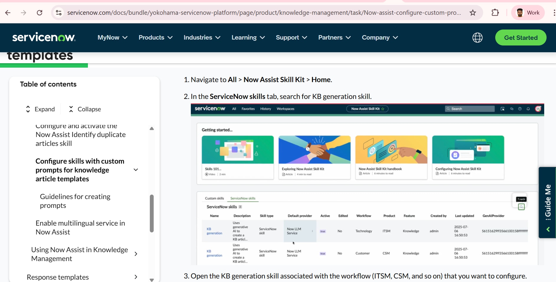 I’m following the official Now Assist Skill Kit (Yokohama) documentation — particularly the section “Configure skills with custom prompts for knowledge article templates.”