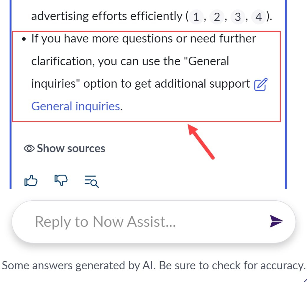 Occasionally, the Now Assist chat widget displays a text block and link that allows the user to create a new case. See attached screen.