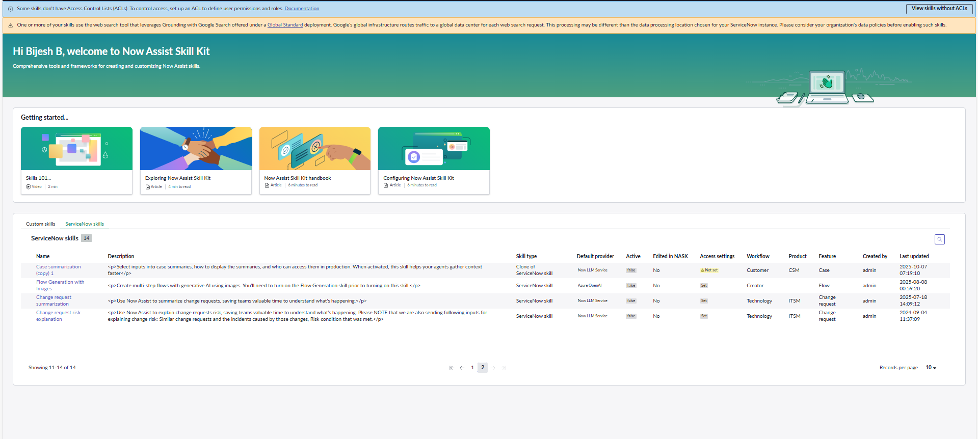 Now Assist Admin skills not visible in Now Assist Skill Kit