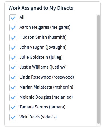 Problem: if the "all" option is selected, then the IF is effectively off as it allows for anybody to be in the assigned to field, even those who are not on the limited list. As long as we don't choose all of the list, the interactive filter works like intended, however, if we wanted to look at tickets for all of our directs without checking the ALL option, then up checking the final individual, the "all" is automatically checked again, and the interactive filter returns to allowing all potential users in the assigned to field.
