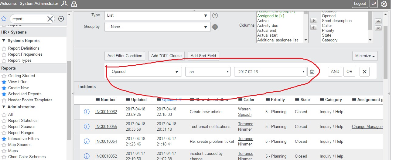 If you want generate a report for incident which are opened on particular date refer the below screenshot.