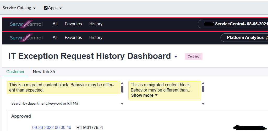 We are currently upgrading to the Zurich Family Release, and Platform Analytics. The legacy dashboards (with the iframe URL as /$pa_dashboards_overview.do) display the Navigation Menu (All, Favorites, and History) in portal, as shown in the attached screenshots.