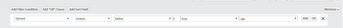 We're trying to pull reports of all incidents opened 3 days, or 4 days, or 5 days ago and using relative doesn't provide us with any data.  Using "Between" doesn't provide us with the options we're looking for.