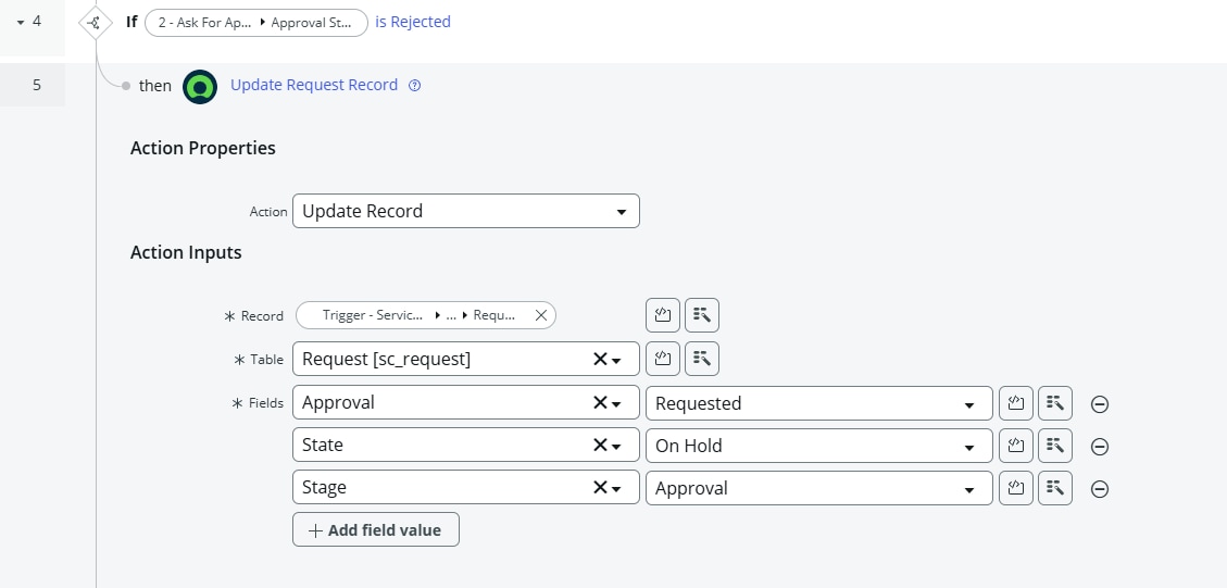 However, as per the client requirement, when the manager rejects the approval, the Request and RITM should move to On Hold (Pending) instead of being canceled or closed.