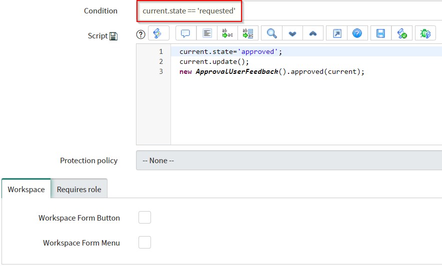 As this UI Actions is just for admin users, let's go to the next "Approve" UI Action: