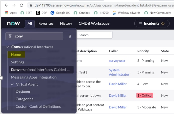 The Conversational Interfaces Home application makes it easy for you to quickly get started and work towards achieving positive outcomes with your implementation to support your users with virtual and live agents through the chat channels they prefer by deflecting the more common, easier to resolve user issues, to a 24/7-available Virtual Agent bot.