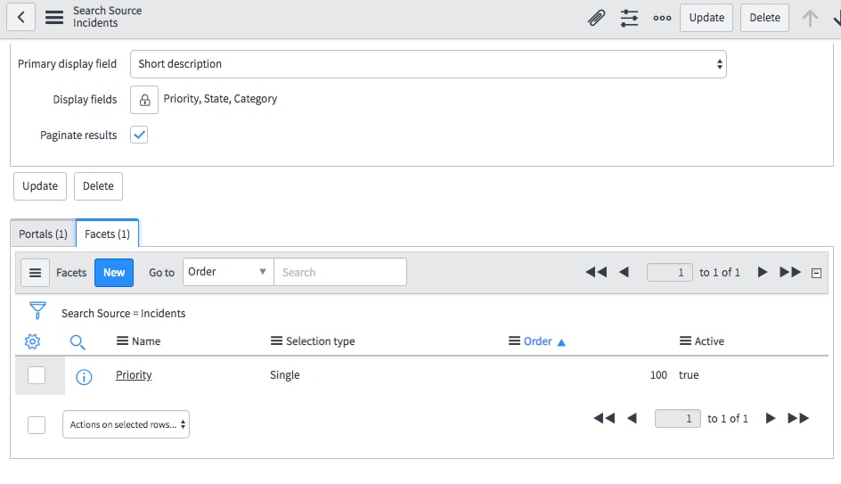 We will create a new Facet to filter incidents based on Priority. Go ahead create the facet record with below information and save it.