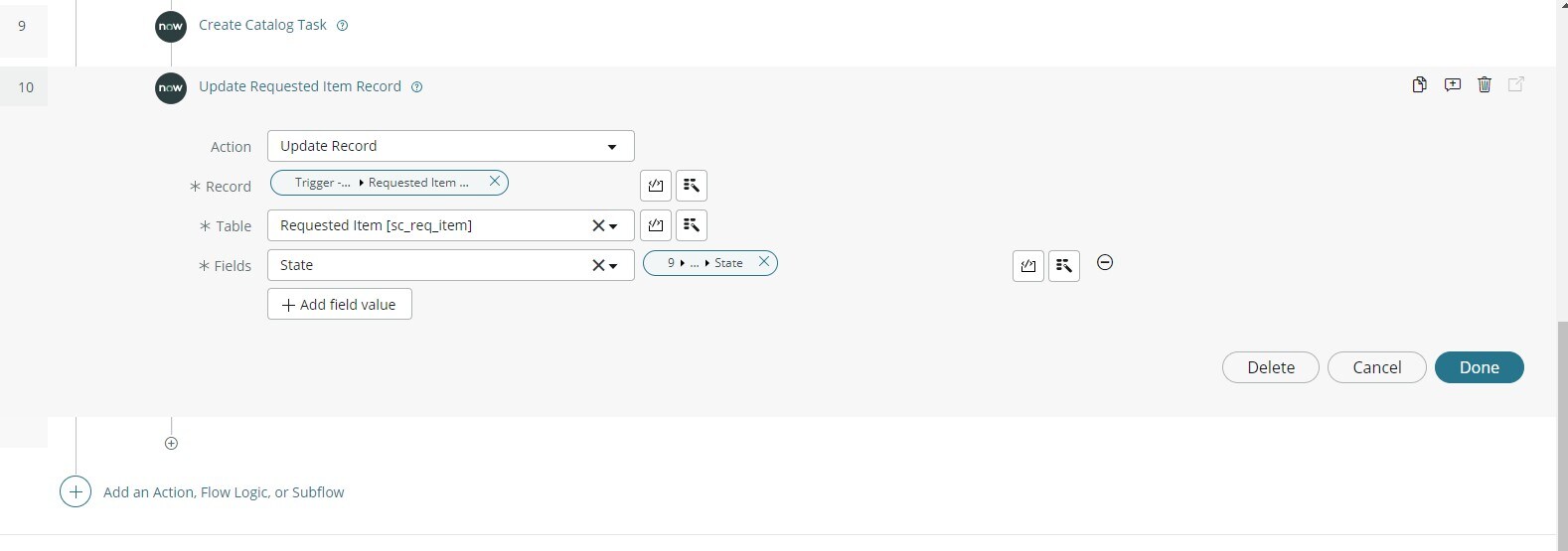 Once the SCTask closes, the RITM should auto-close, matching the state of the SCTask. What am I missing for the SCTask to close the RITM? I have a step to Update RITM State to match SCTask State.
