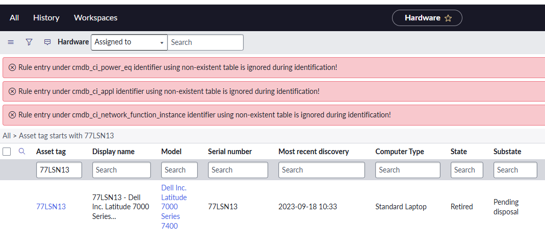 Errors when updated asset records in ServiceNow