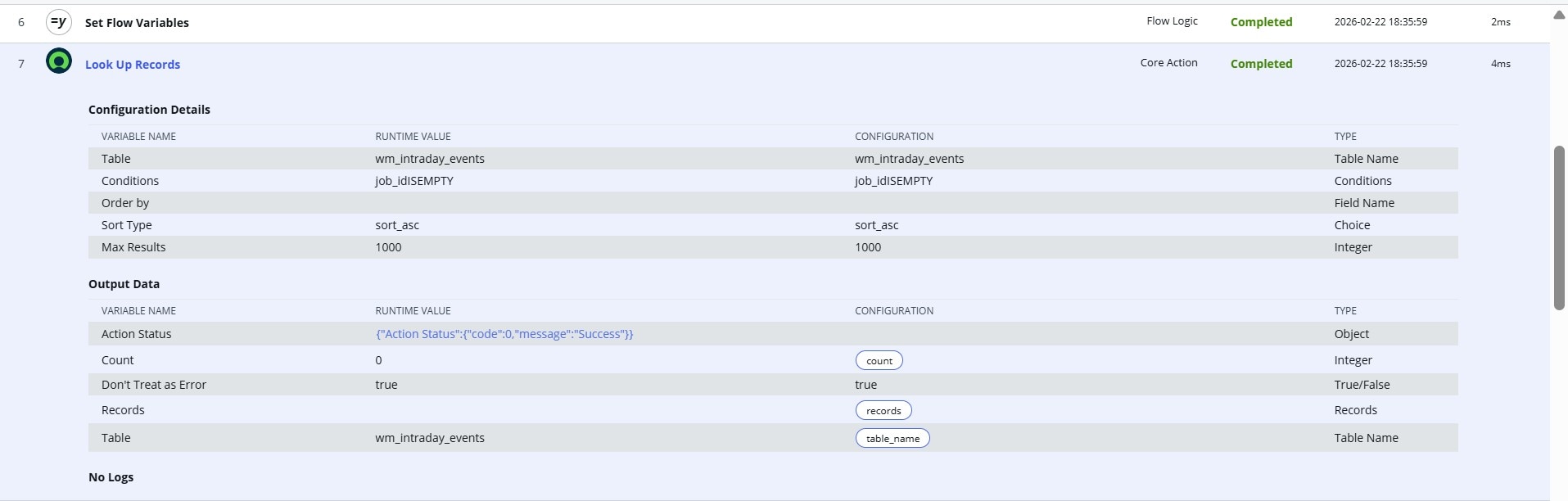 1.Flow Execution: * Step 1-7 complete successfully.